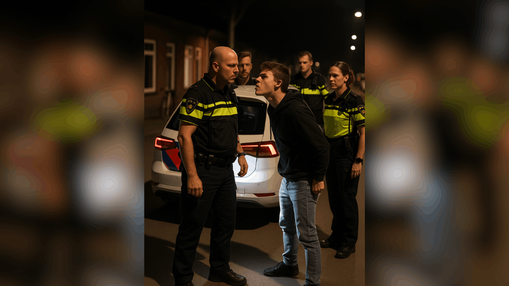 De reactie van de agent laat niet lang op zich wachten: hij haalt uit met zijn vuist. Het fragment roept vragen op over de grenzen van politieoptreden en het respect dat gezagsdragers tegenwoordig nog krijgen.