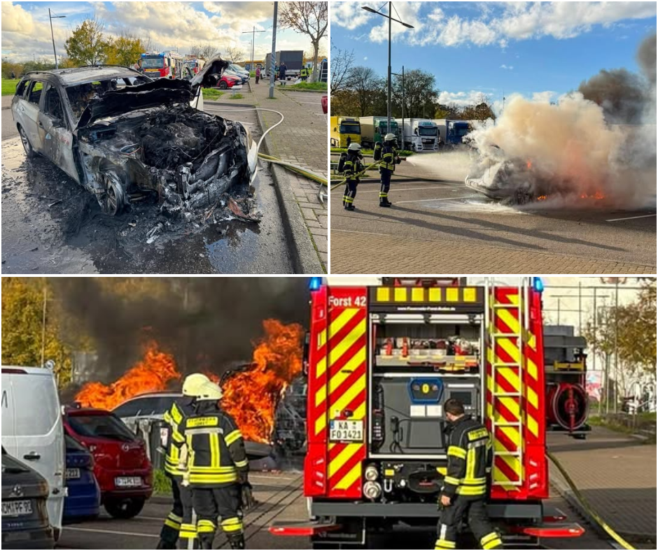 Ein spektakulärer Fahrzeugbrand sorgte am Montagnachmittag auf dem Rasthof Bruchsal Ost an der A5 bei Forst fur einen Großeinsatz der Feuerwehr. Gegen 14:56 Uhr gingen bei der Leitstelle mehrere Notrufe ein: Ein Mercedes stand auf dem Parkplatz des Rasthofs in Vollbrand, dichter schwarzer Rauch stieg weithin sichtbar in den Himmel.