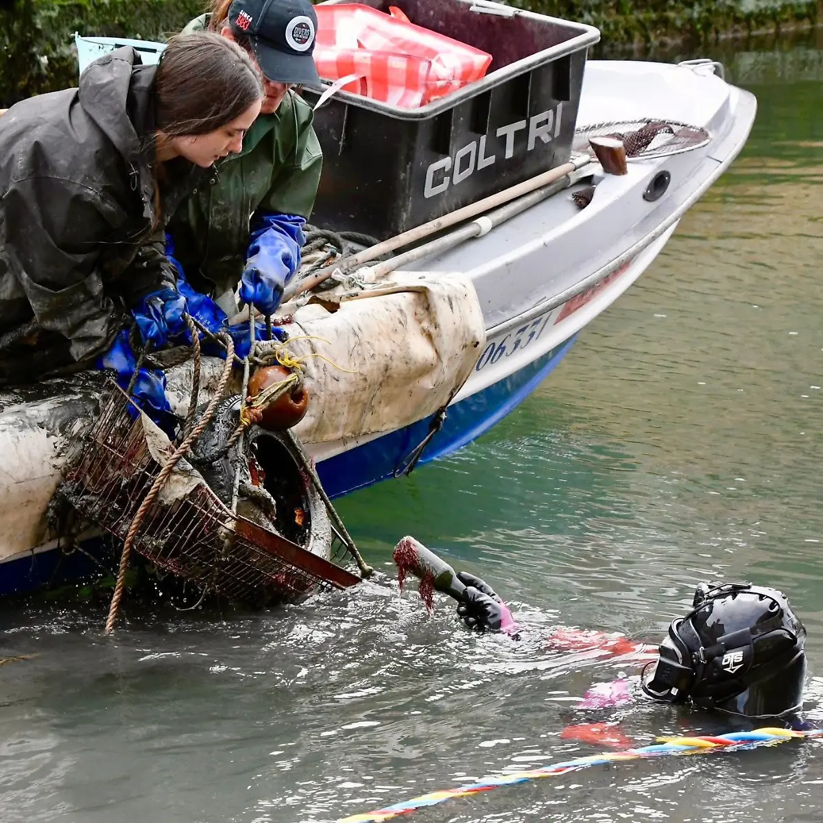 Seit Beginn der Aktion hat die Gruppe Berge von Mull aus den Kanälen gezogen. Autoreifen zählen zu den häufigsten Funden – teils modern, teils alt und voller Muscheln. Doch neben dem Alltäglichen tauchen regelmäßig uberraschende Objekte auf: eine handgeschnitzte Holztur aus dem 19. Jahrhundert, ein Bidet, Teile alter Boote, einmal sogar ein Rindsschädel, vermutlich aus einer Großkuche oder von einem Marktstand.