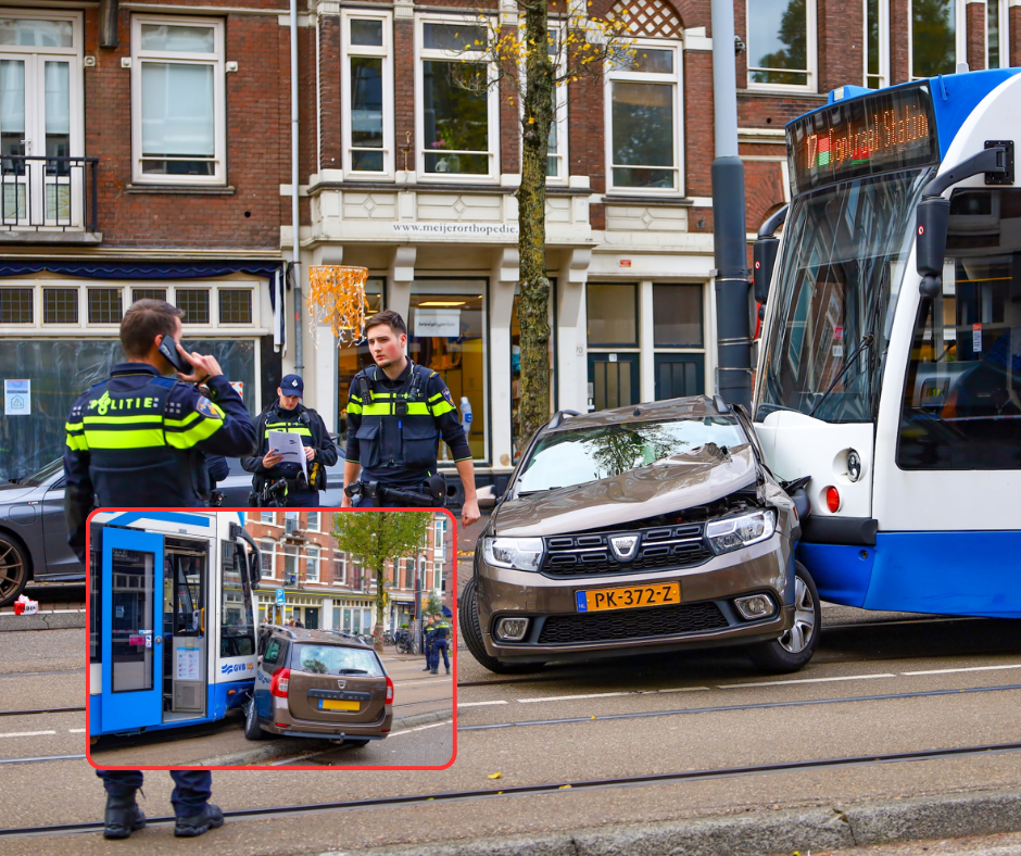 Chaos en paniek in Amsterdam: meerdere gewonden na zware botsing tussen auto en tram in drukke binnenstad