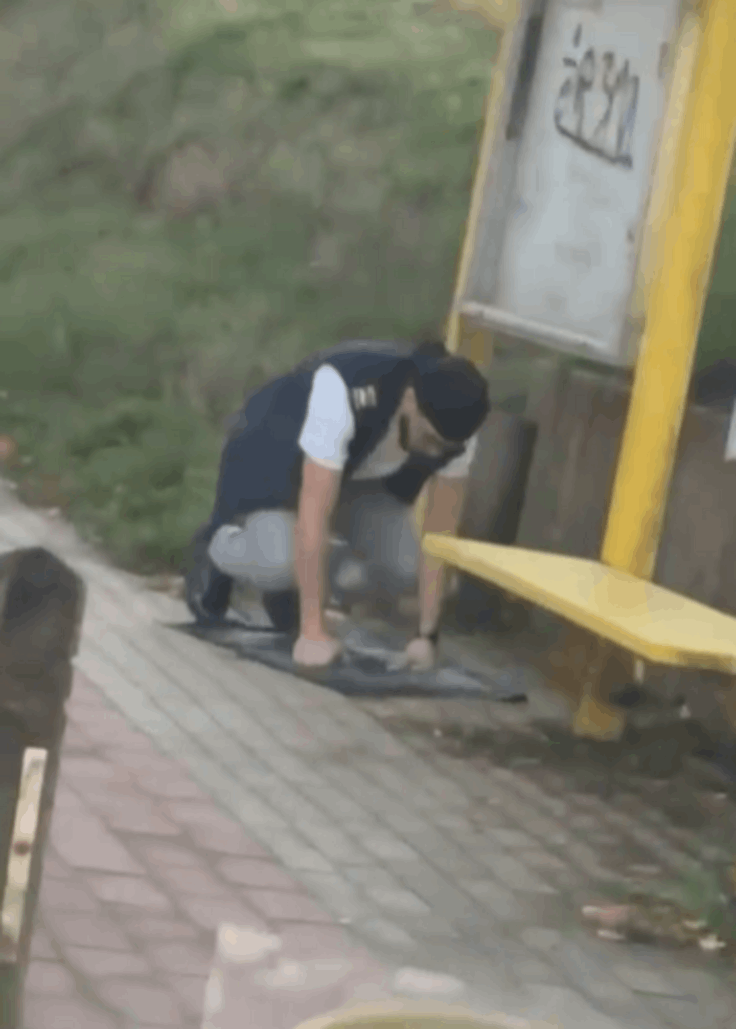 De beelden tonen hoe de buschauffeur, die lijn 553 richting Groenendaal reed, plots ter hoogte van een bushokje in de Merenstraat halt hield. De bus stond niet in een eindhalte of officiële rustplaats, maar op een plek waar verkeer achter hem werd opgehouden. Vervolgens stapte de chauffeur uit, legde een gebedsmat neer naast het bushokje en begon te bidden.