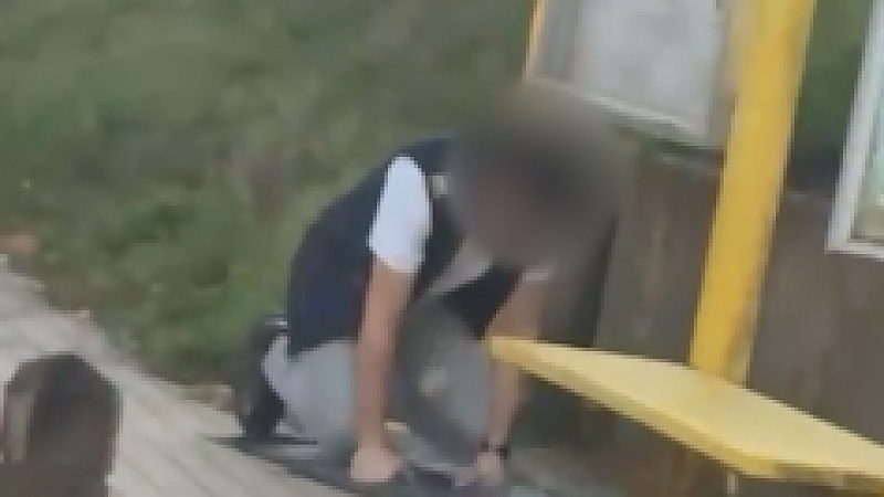 Het incident: bus stopt, chauffeur knielt naast bushokje