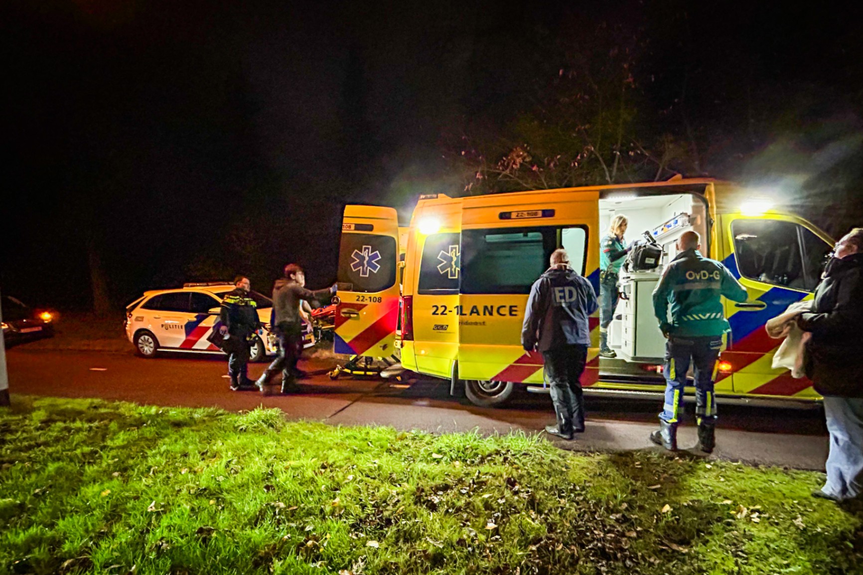 Omwonenden waren getuige van de enorme drukte die volgde. Ambulances, agenten op fiets en vervolgens zelfs een speurhondenteam werden ingezet om de dader op te sporen. De jongen, die zwaar bloedend op het fietspad werd aangetroffen, werd met spoed naar het ziekenhuis gebracht.