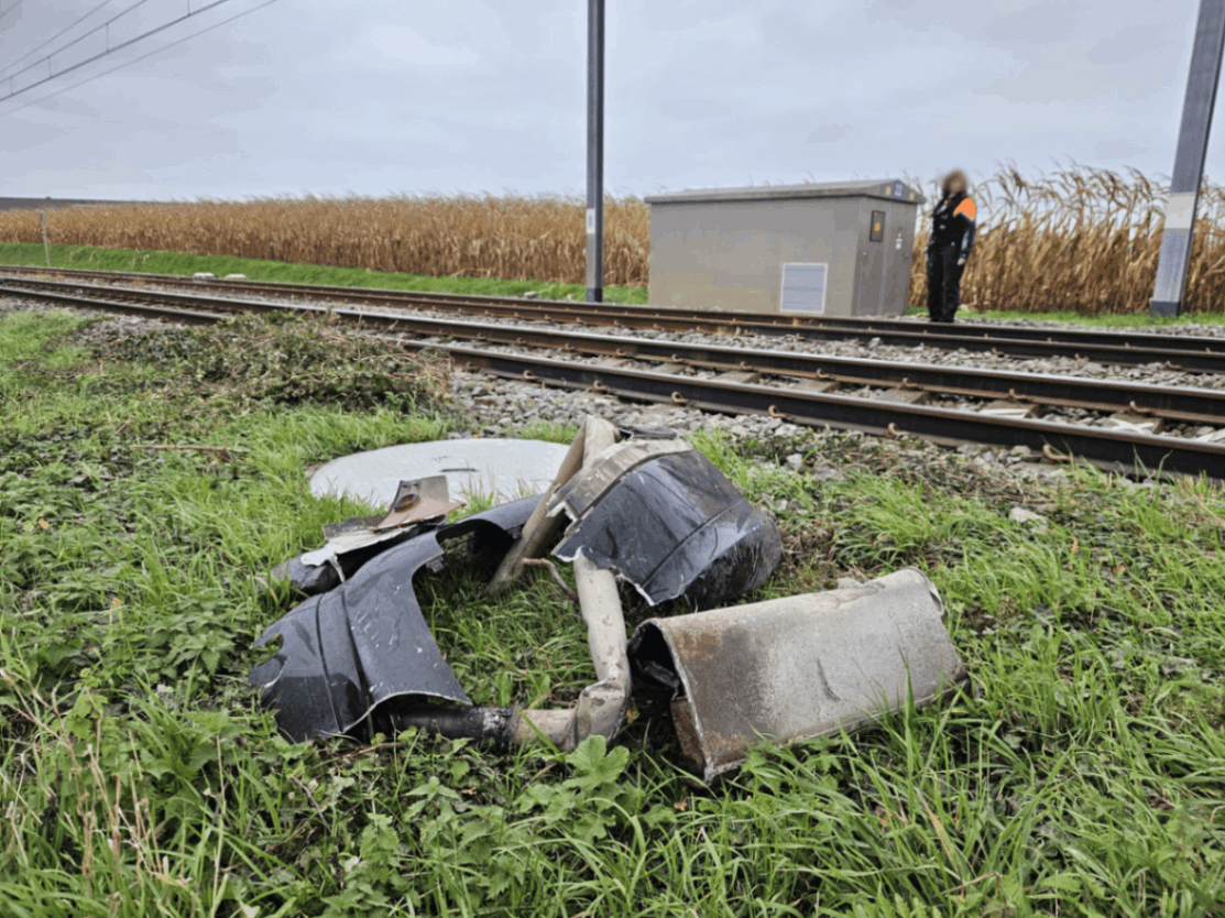 De man kon zichzelf in veiligheid brengen, maar de ravage is enorm. Zijn Mercedes werd honderden meters meegesleurd en eindigde verkreukeld onder de neus van de trein.