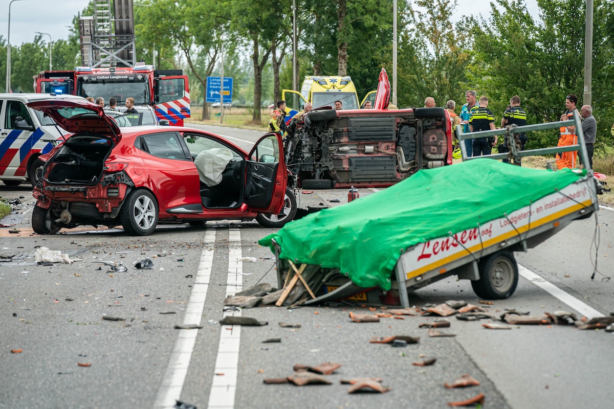 Bij het ongeluk was ook een bedrijfsbusje betrokken dat een aanhanger met een grote lading dakpannen trok. Na de klap kwam de aanhanger los en midden op de rijbaan tot stilstand, wat direct voor extra gevaar zorgde voor passerend verkeer. Het busje zelf kwam enkele meters verderop tot halte en liep forse schade op aan de trekhaak.