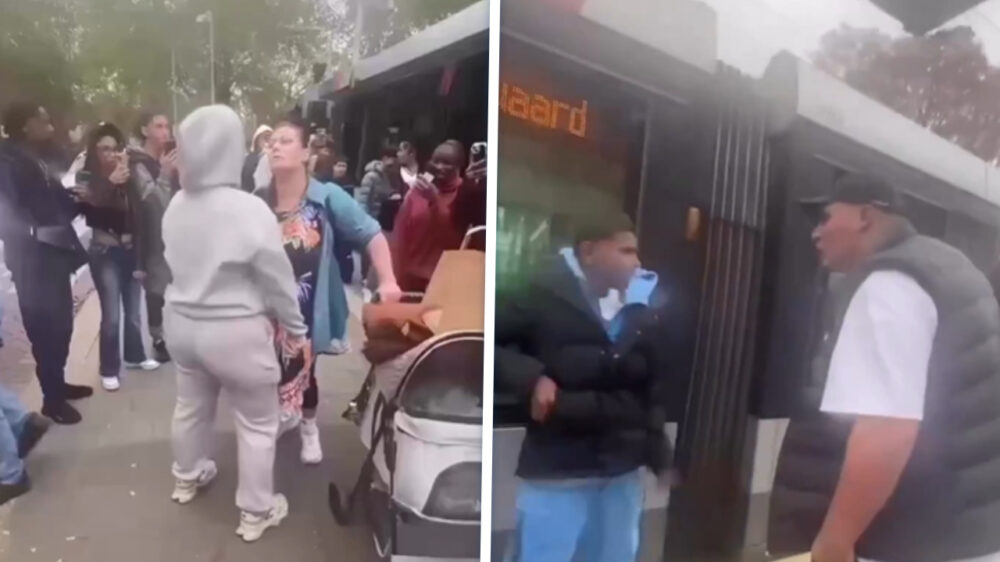 Jongeren belagen moeder met kinderwagen, man grijpt hard in