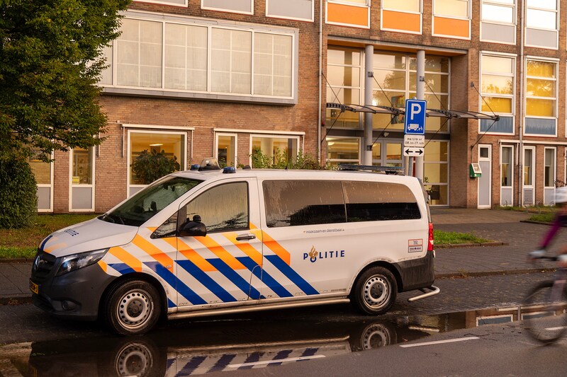De politie staat vrijdagochtend met een busje voor het schoolgebouw van het Castor College. Ook het Dalí College, SKILLS, Forta en Fourteens houden hun deuren dicht.