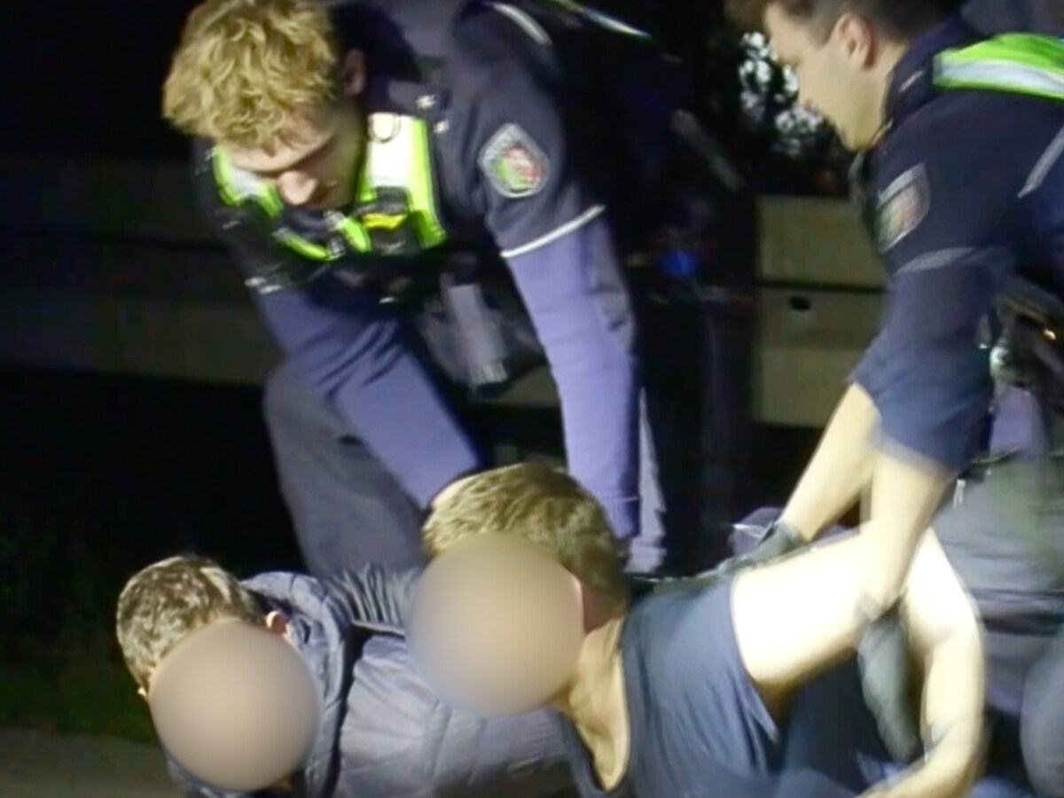 Während der Sperrmaßnahmen meldeten mehrere Autofahrer verdächtige Beobachtungen im Bereich der abgesperrten Autobahn. Zwei Männer wurden daraufhin von bewaffneten Polizisten gestellt, zu Boden gebracht und festgenommen. Videoaufnahmen zeigen, wie die Einsatzkräfte mit gezogenen Waffen vorgingen.