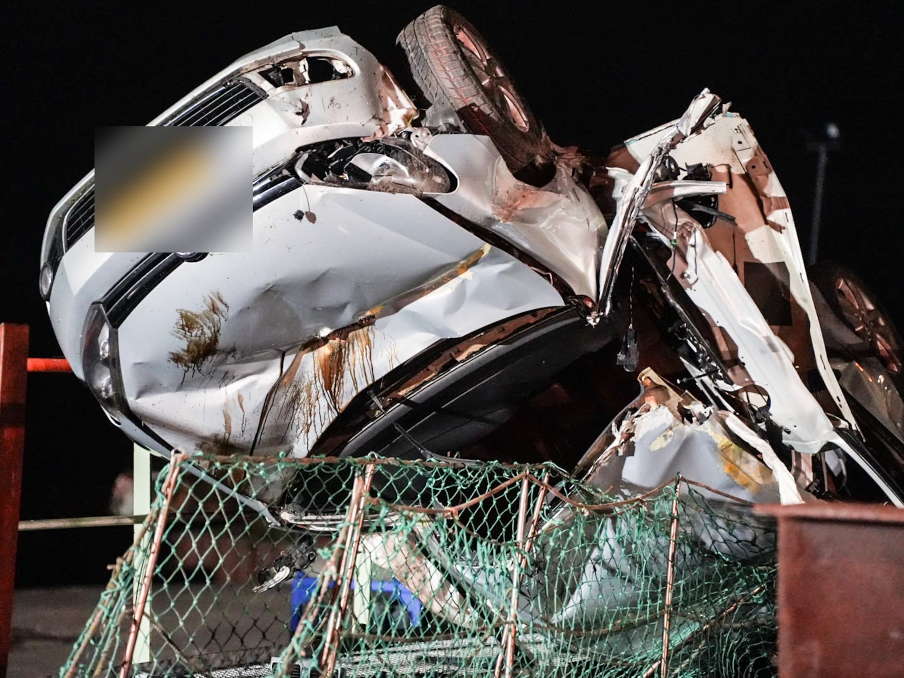 De klap was zo hevig dat het voertuig gedeeltelijk vast kwam te zitten tussen de stalen balken van de brug. De voorkant van de auto werd volledig ingedeukt en de airbags waren geactiveerd. Getuigen meldden een harde knal en waarschuwden direct de hulpdiensten.
