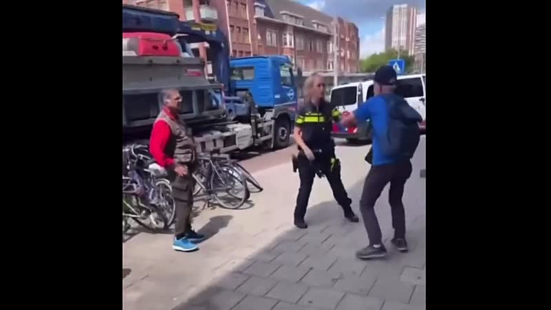 “Je hebt grote monden en je hebt déze man,” grapte een omstander die het incident filmde. De man, zichtbaar geïrriteerd, besloot zijn machtsvertoon te testen tegenover de agente. Hij sprak luid, probeerde dichterbij te komen en zwaaide met zijn armen, alsof hij zijn overwicht wilde afdwingen. Het publiek hield de adem in – hoe zou zij reageren?