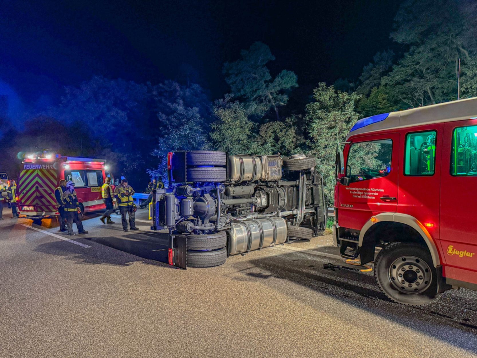 Die B9 war über mehrere Stunden voll gesperrt. Zahlreiche Einsatzkräfte von Polizei, Feuerwehr und Rettungsdienst waren vor Ort. Der Fahrer der Zugmaschine wurde verletzt und in ein nahegelegenes Krankenhaus gebracht. Über seinen Gesundheitszustand ist derzeit nichts Näheres bekannt.