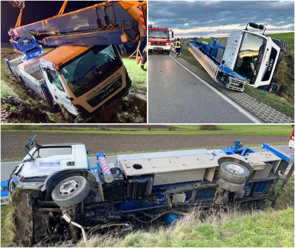 Schock auf bayerischer Landstraße: 30-Tonnen-Kran kippt plötzlich um – Fahrer kämpft ums Leben!