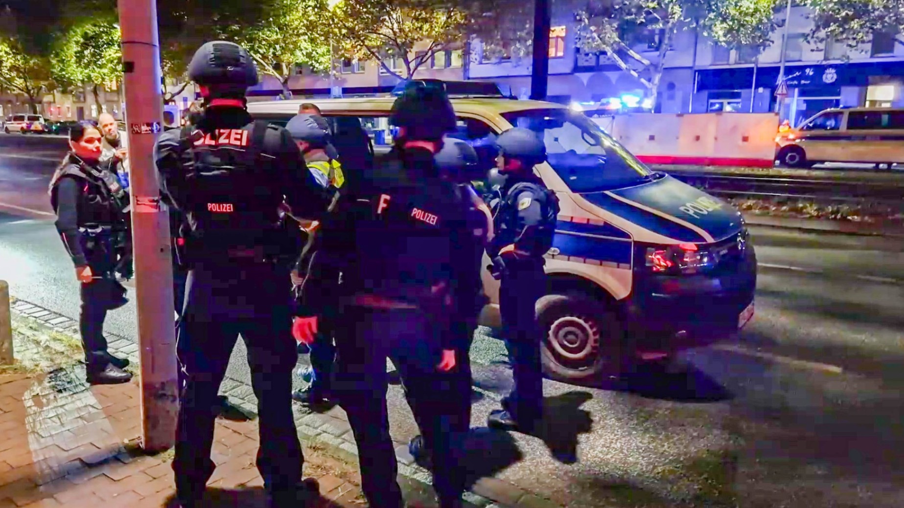 Ein Polizeihubschrauber kreiste bis in die Nachtstunden über dem Gebiet, während Spürhunde nach Tatwaffen und möglichen flüchtigen Verdächtigen suchten. Anwohner wurden gebeten, ihre Wohnungen nicht zu verlassen, und der Straßenbahnverkehr auf der Linie 1 wurde vorübergehend eingestellt.