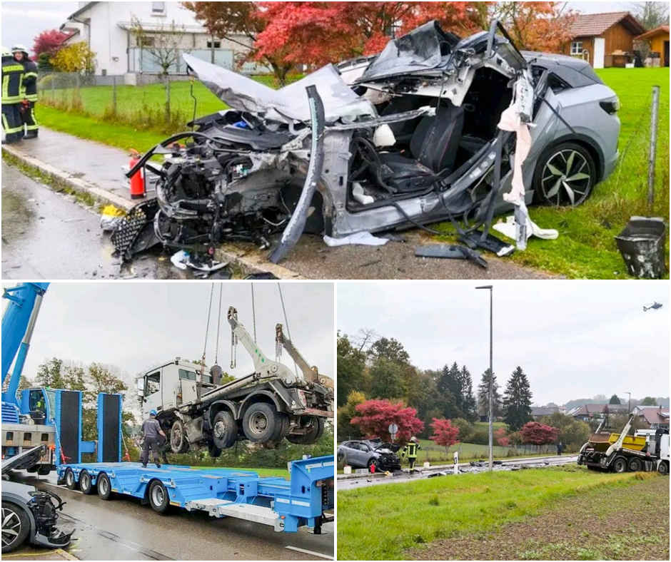 Der Aufprall war derart heftig, dass das Auto der Frau völlig zerstört wurde. Trummerteile verteilten sich uber mehrere Meter auf der Fahrbahn, während der Lkw durch die Wucht des Aufpralls auf eine angrenzende Wiese geschleudert wurde und dort zum Stehen kam.