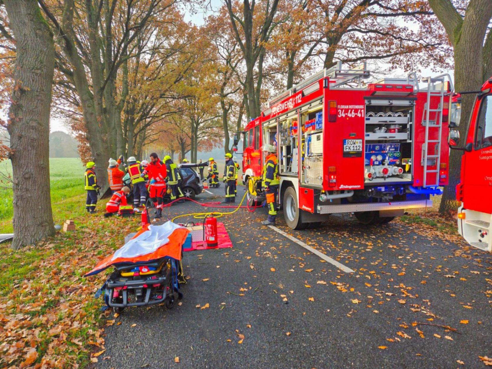 Ein schrecklicher Verkehrsunfall hat sich am Montagnachmittag auf der Kreisstraße 210 zwischen Süderwalsede und Holtebüttel im Landkreis Rotenburg (Wümme) ereignet. Gegen 14.50 Uhr kam ein junger Autofahrer mit seinem VW Polo aus bislang ungeklärter Ursache von der Fahrbahn ab und prallte frontal gegen einen Straßenbaum. Die Wucht des Aufpralls war so enorm, dass der Motorblock vollständig aus dem Fahrzeug herausgerissen wurde.