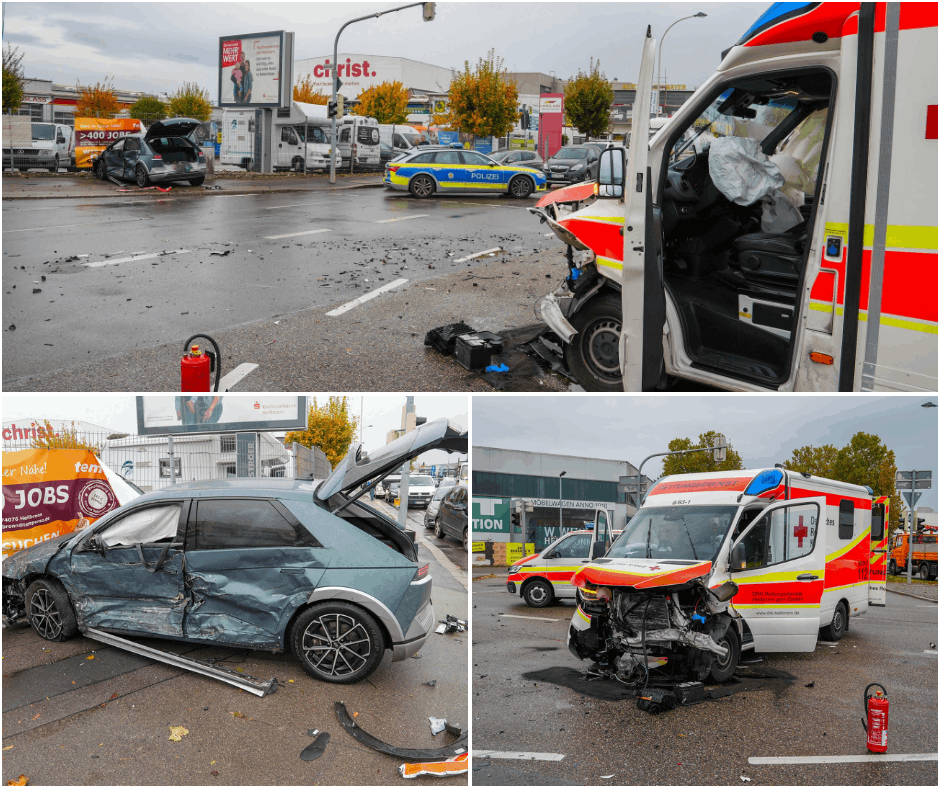 Schwerer Unfall bei Notfallbehandlung in Heilbronn: Rettungswagen kracht in Auto - Fünf Verletzte nach heftigem Zusammenstoß
