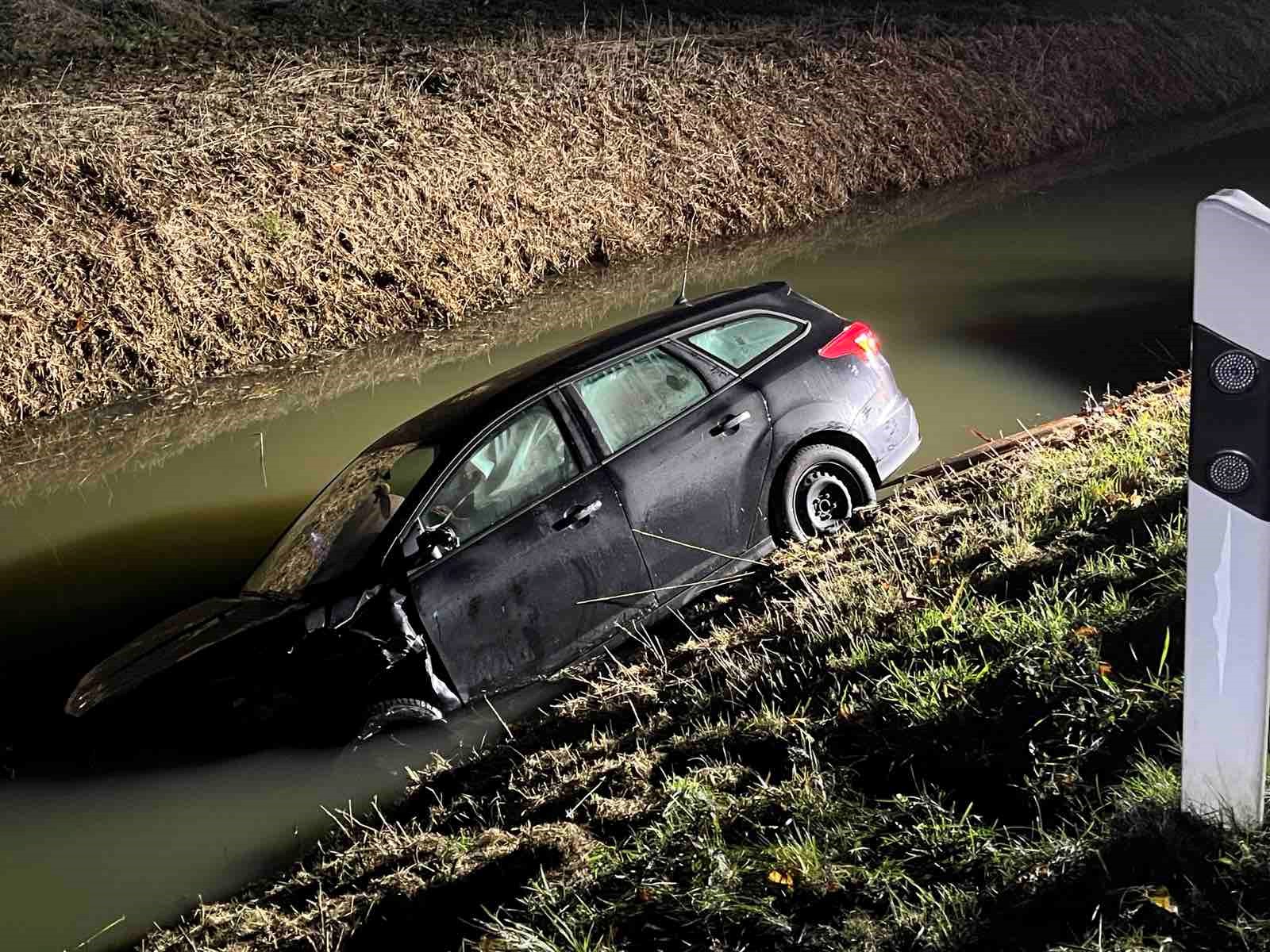 Kurz nach der Kollision rückten Feuerwehr, Rettungsdienst und Polizei zum Einsatzort aus. Die Einsatzkräfte der Feuerwehr mussten sowohl die Unfallstelle sichern als auch das im Wasser liegende Fahrzeug stabilisieren, um weitere Gefahren zu vermeiden. Der Wagen musste mit technischem Gerät aus dem Graben gezogen werden – eine Aufgabe, die sich aufgrund des weichen Ufers und der Dunkelheit als besonders anspruchsvoll erwies.
