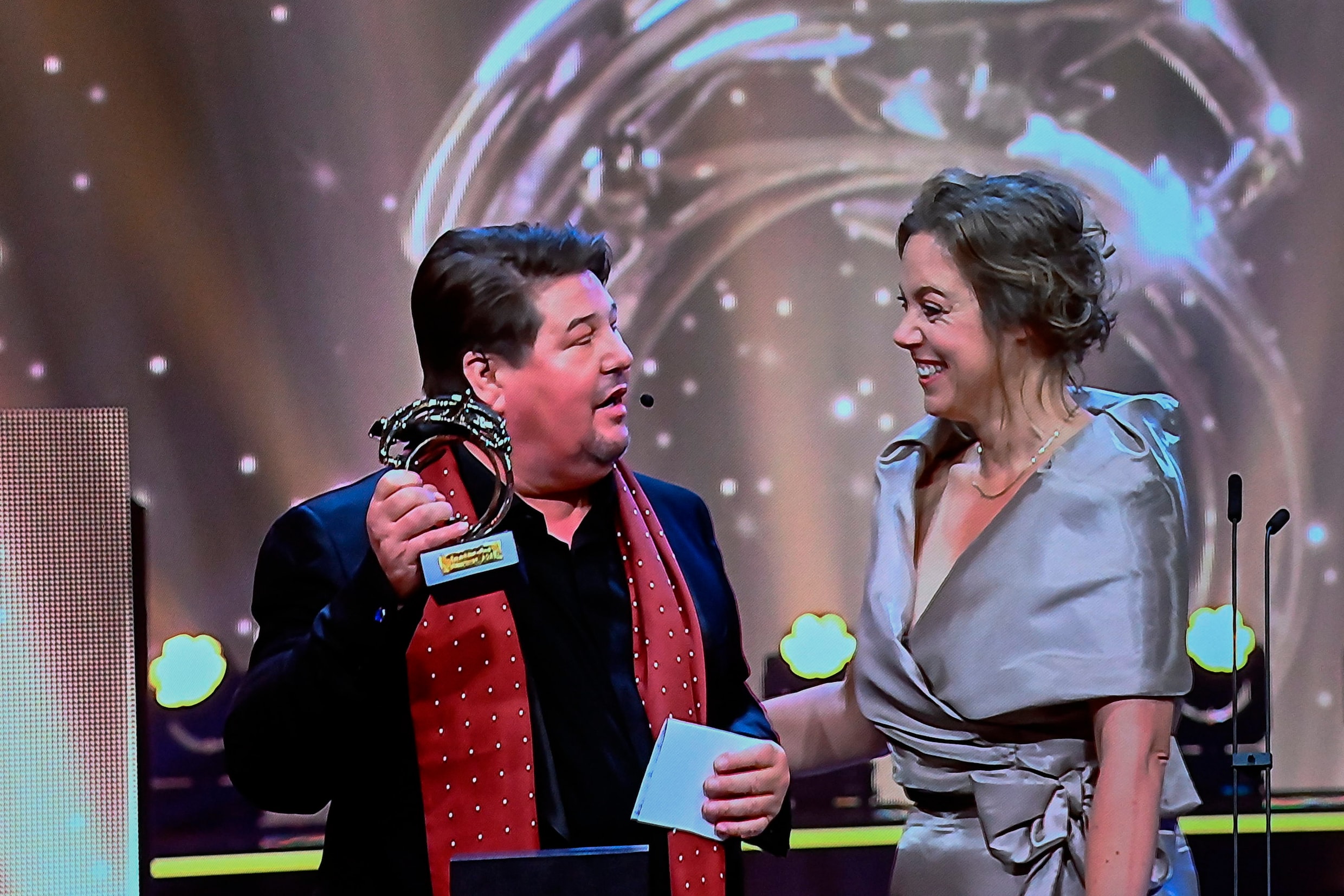 Martijn heeft de Televizier-Ring Presentator vanavond ook gewonnen. Hij versloeg concurrenten Wilfred Genee en Hélène Hendriks, die de prijs twee jaar geleden al in ontvangst nam.