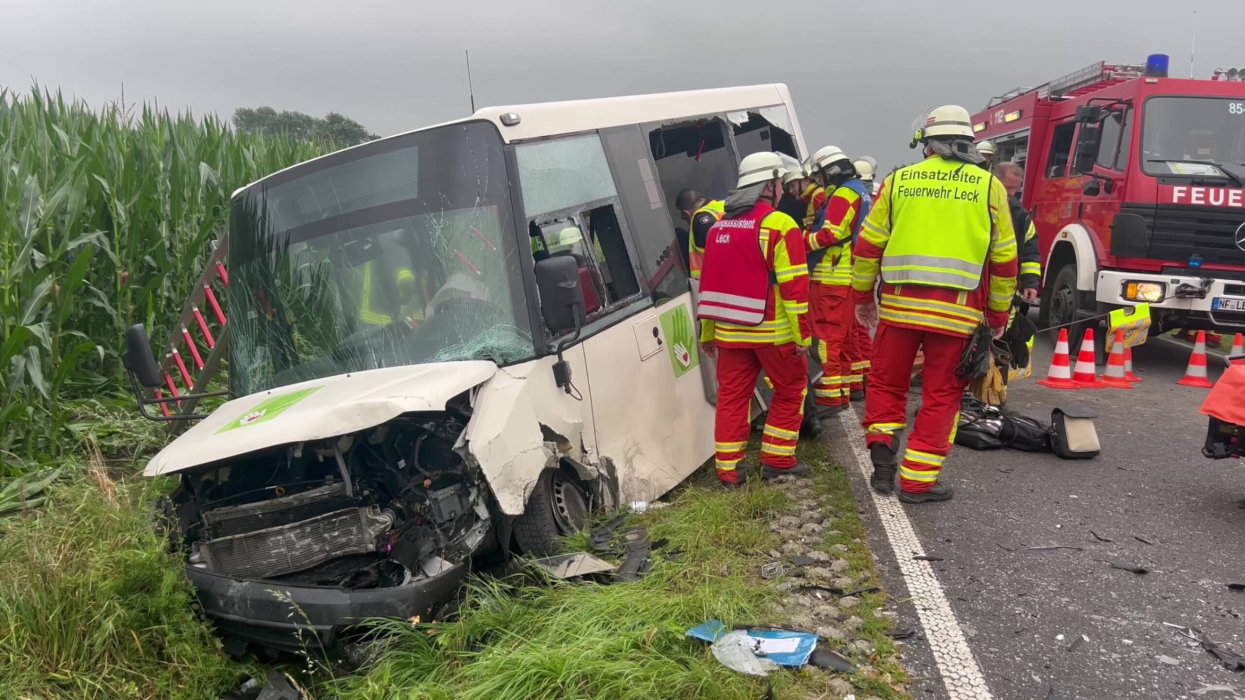 Karlum (Nordfriesland) – Ein schwerer Verkehrsunfall hat am Donnerstagmorgen im Norden Schleswig-Holsteins zwei Menschenleben gefordert und mehrere weitere schwer verletzt. Auf der Landstraße 3 zwischen Karlum und Ladelund prallte eine 19-jährige Autofahrerin frontal mit ihrem Renault gegen einen Kleinbus, in dem sich eine Gruppe Seniorinnen und Senioren auf dem Weg zur Tagespflege befand.