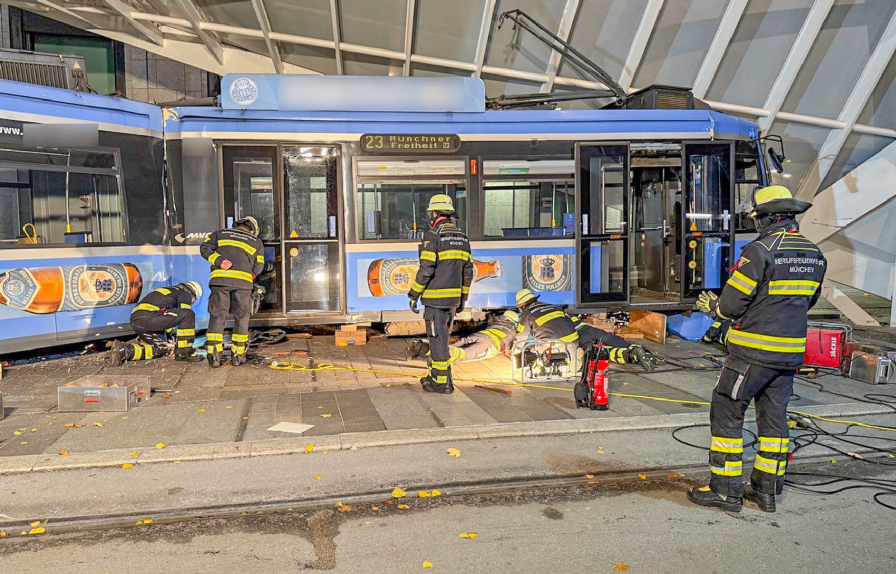 Ein schwerer Verkehrsunfall hat am Donnerstagabend den Münchner Norden erschüttert. Eine Straßenbahn der Münchner Verkehrsgesellschaft (MVG) ist aus bislang ungeklärter Ursache entgleist und in den Wartebereich einer Haltestelle gekracht. Vier Menschen wurden dabei verletzt, zwei von ihnen schwer.
