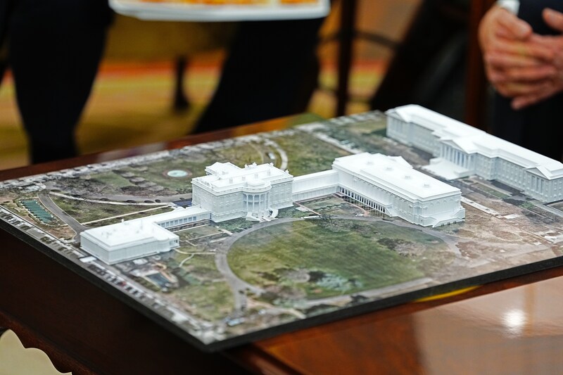 De beslissing zou genomen zijn na overleg met zijn architecten, die volgens Trump “een visie delen voor een nieuw tijdperk van grandeur in het Witte Huis.”