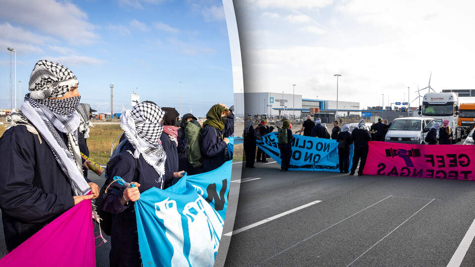 Het is helemaal mis in de Rotterdamse Haven. Daar blokkeren activisten van de groep Geef Tegengas momenteel op twee locaties de weg. De demonstranten zijn gemaskerd en hebben zwaaien ook met Palestijnse vlaggen. Vrachtwagenchauffeurs hebben ingegrepen.