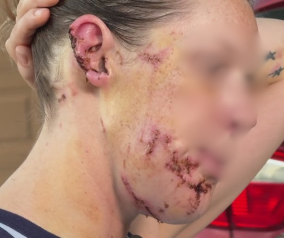 De hulpdiensten arriveerden kort daarop en brachten haar met spoed naar het ziekenhuis, waar ze de volgende ochtend urenlang reconstructieve chirurgie onderging.