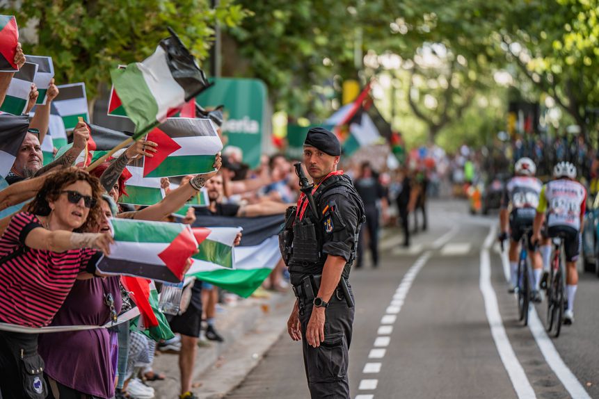 “Zet ze uit de race”: Pro-Palestijnse demonstranten richten zich tegen Israel-Premier Tech tijdens twaalfde etappe van de Vuelta