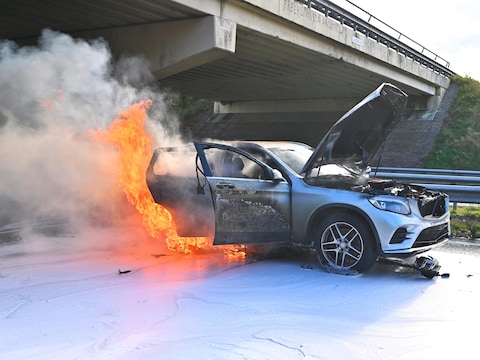 Zware crash op de A2: Auto volledig in vlammen opgegaan, snelweg bij Maarheeze volledig verlamd, chaos op de plaats van het incident